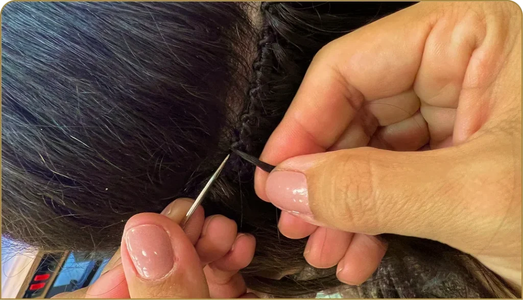 Tratamento e higienização dos fios para receber o mega hair ou topper, garantindo saúde e um acabamento impecável.