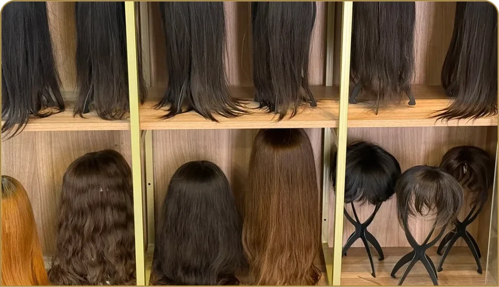 Confecção artesanal no ateliê, com cabelos humanos de alto padrão, tecnologia de ponta e acabamento ultrafino.